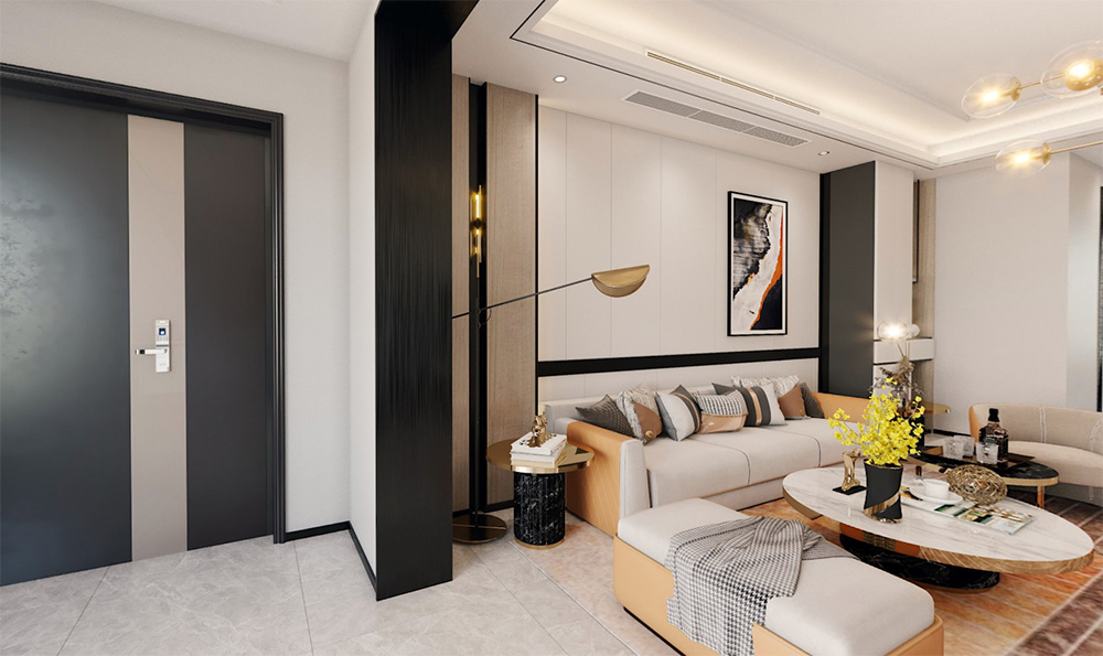佛山潘村公寓四居輕奢風格裝修效果圖