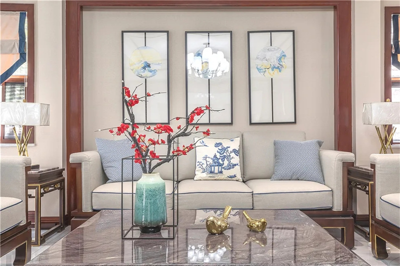 布局方正的布藝沙發簡雅端莊,別具大宅之家的氣韻,呼朋喚友齊聚一堂,客廳氛圍自然輕松又舒適。