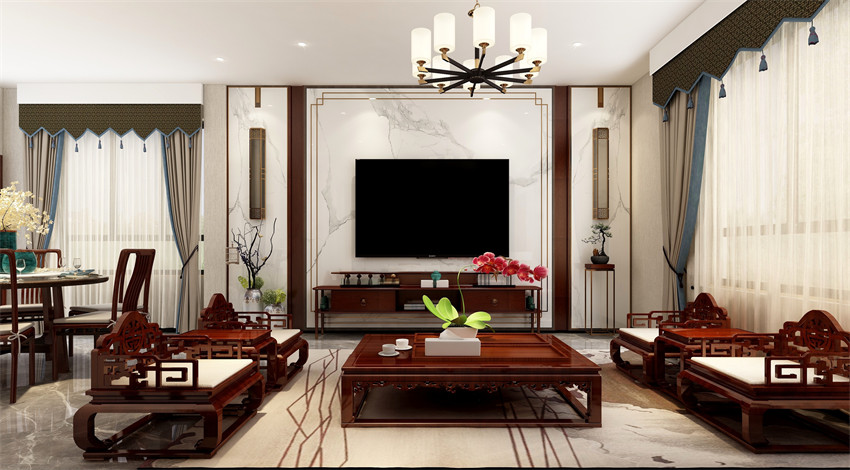 中山101-200平米新中式風格國韻飄香室內設計效果圖