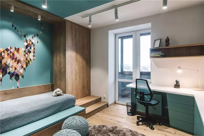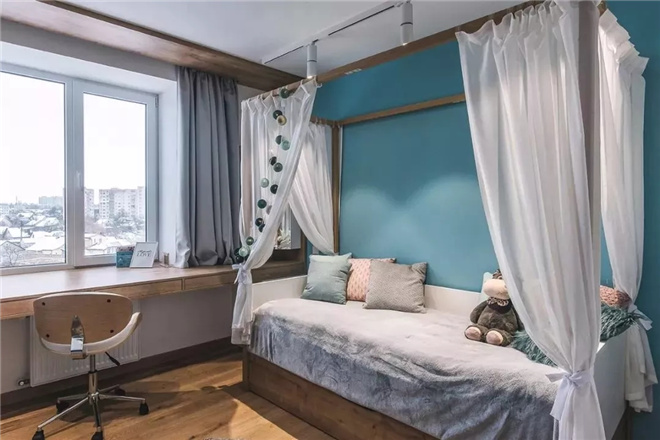 藍色搭配木色兒童房,木色搭配灰藍色調的臥室,設計者巧妙的將兩個補色結合,畫面太美不敢看!