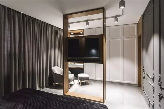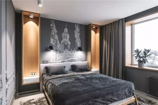臥室主色調是灰色,搭配木色,這簡直就是絕配,含蓄內斂而且很耐看。