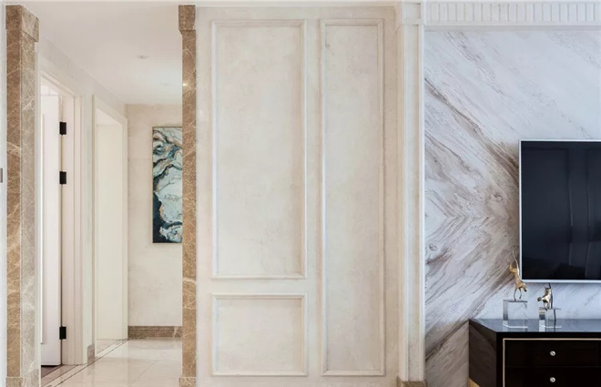 過道處設置組合儲物柜,在滿足過道的標準尺寸的同時增加儲物功能。