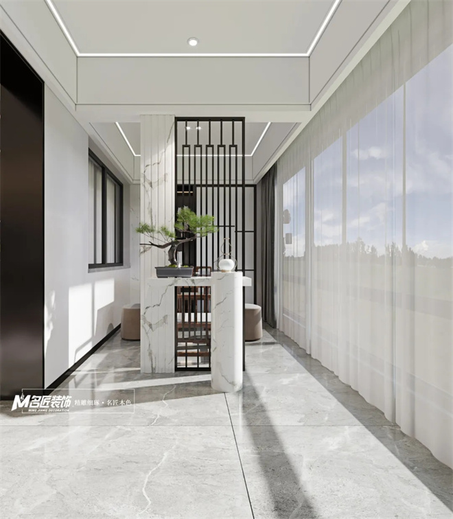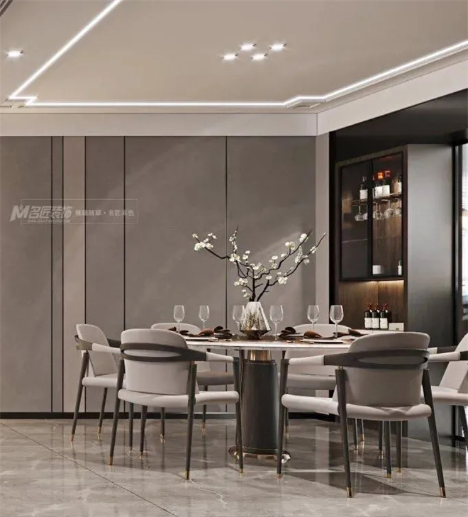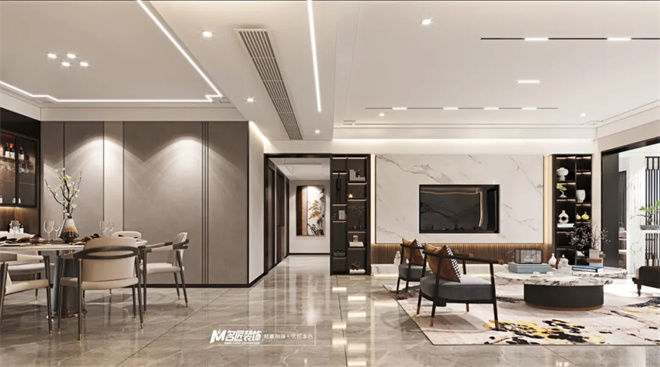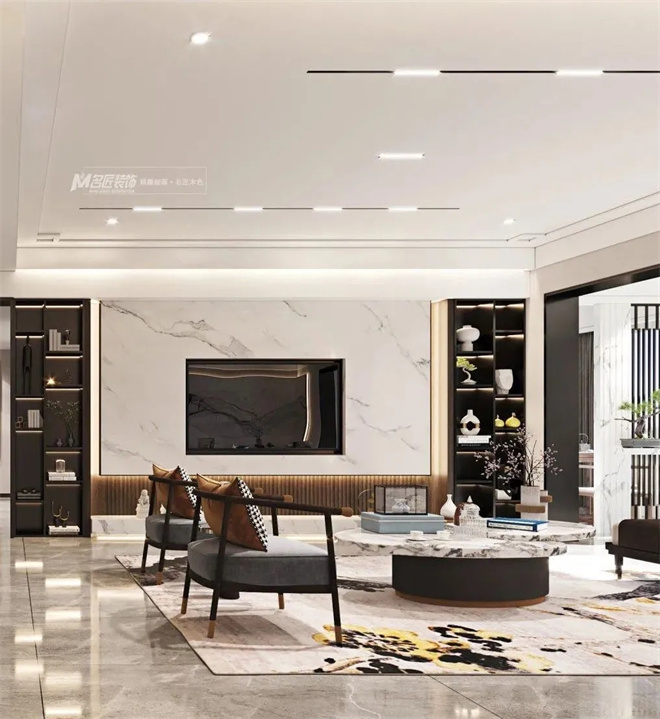 讓空間不至于局促憋悶。再依據現代裝修的特點結合大理石、黃銅、水晶等元素