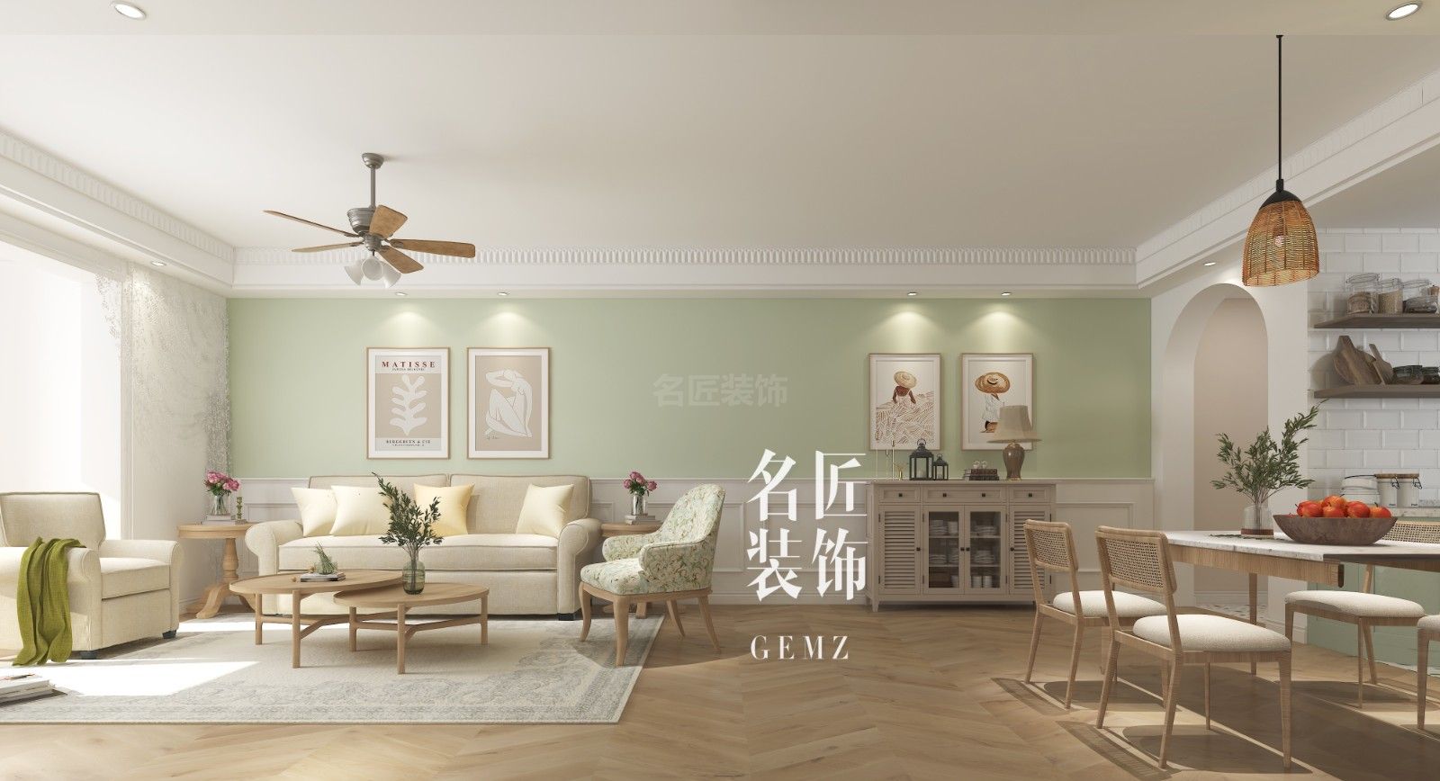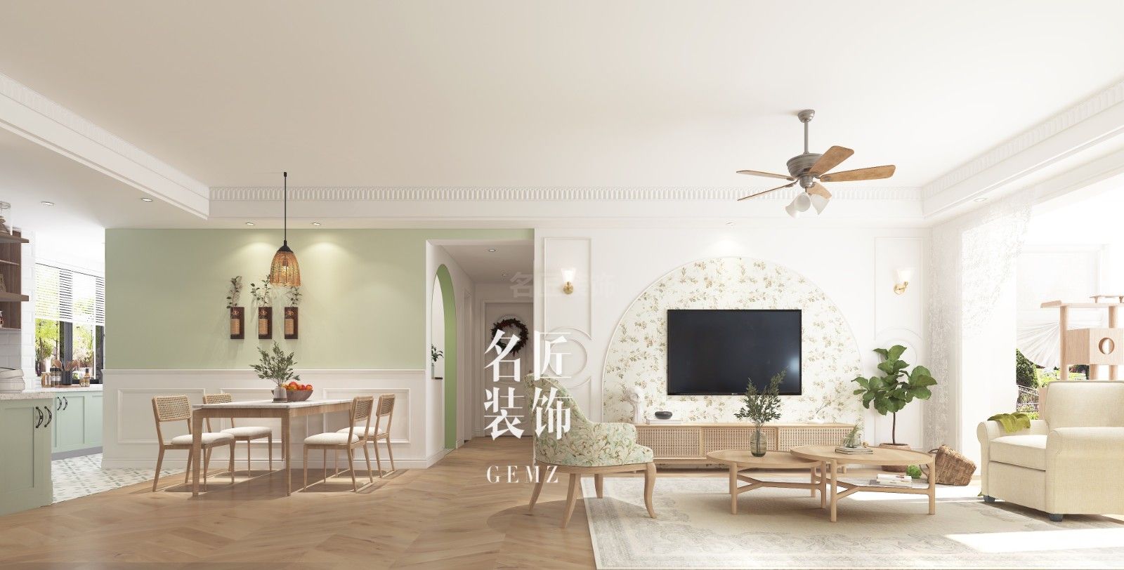 佛山100平米以下田園風(fēng)格怡翠玫瑰園家裝設(shè)計(jì)效果圖