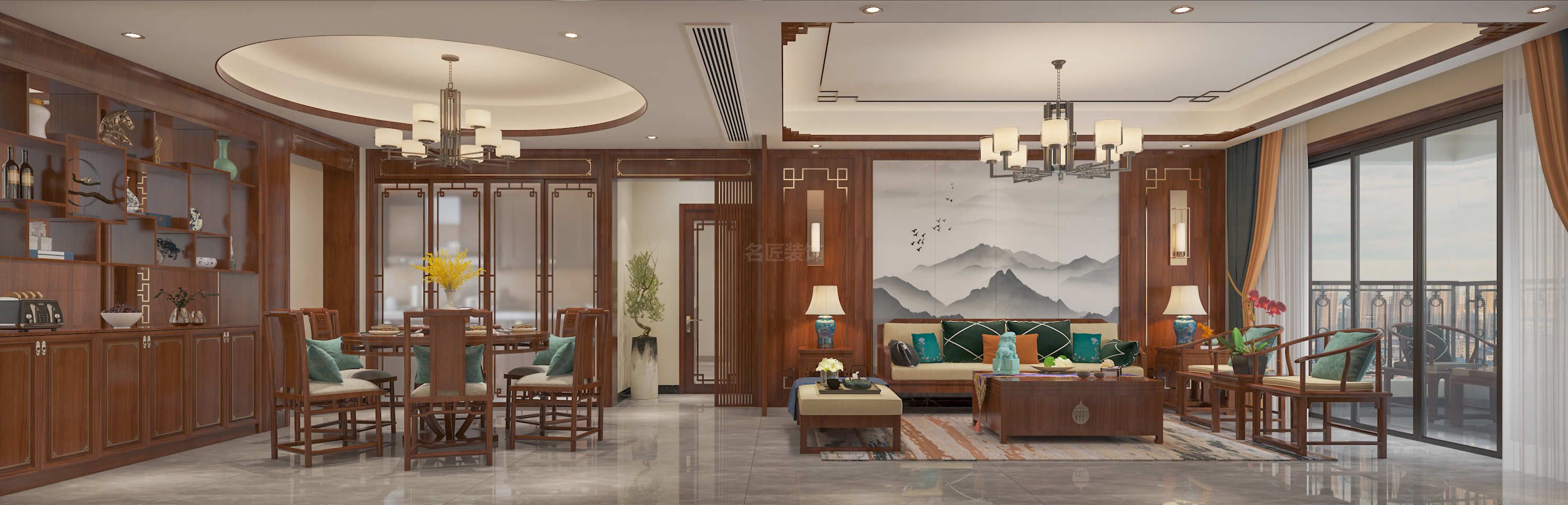惠州101-200平米新中式風格榮泰河庭裝修設計效果圖