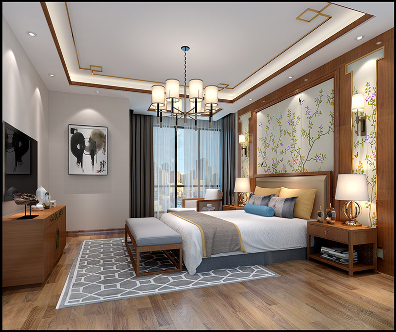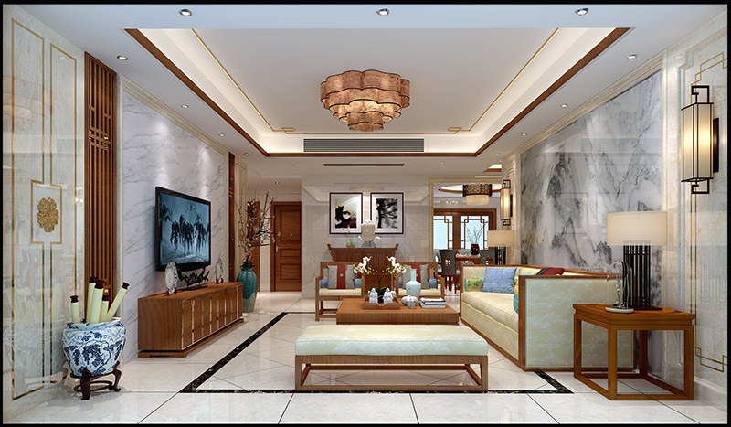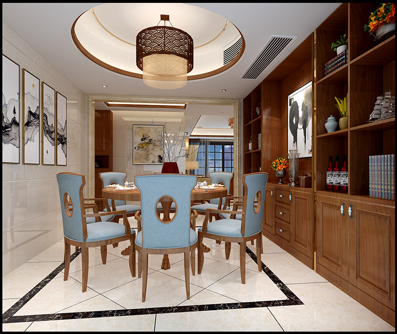 惠州101-200平米新中式風格榮泰河庭家裝設(shè)計效果圖