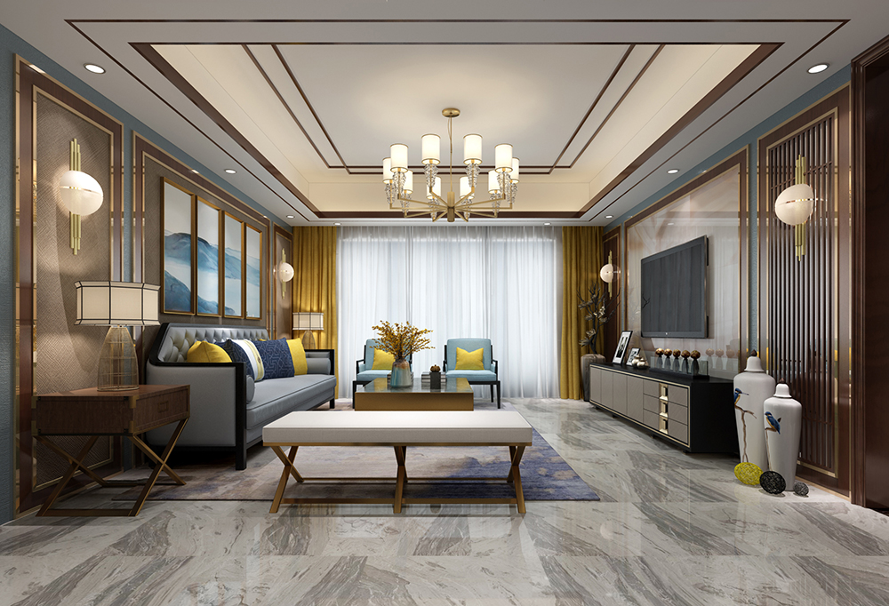 中山101-200平米新中式風格國韻飄香室內設計效果圖