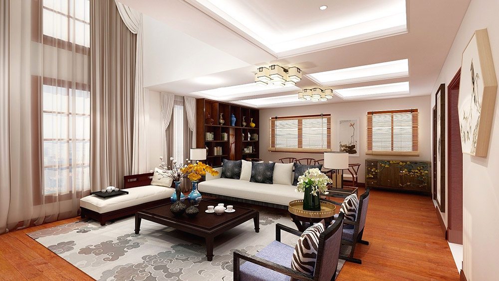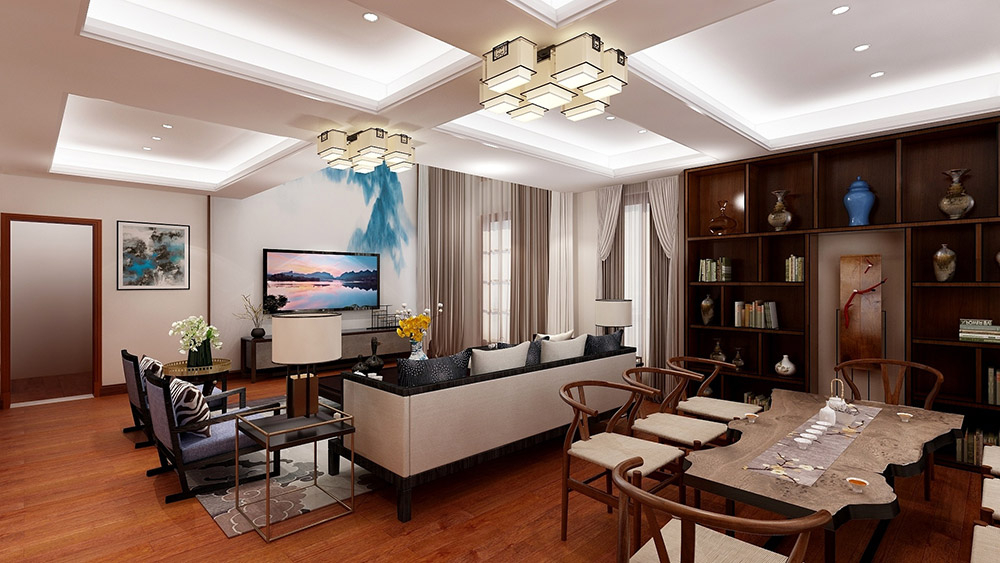 大理白族自治州左岸高地別墅新中式風格裝修效果圖