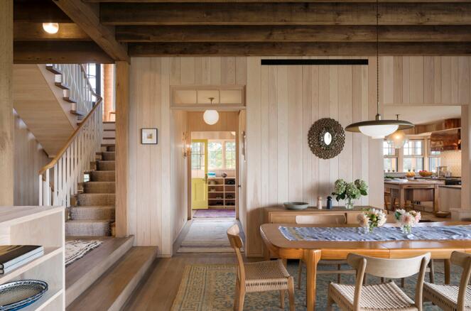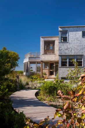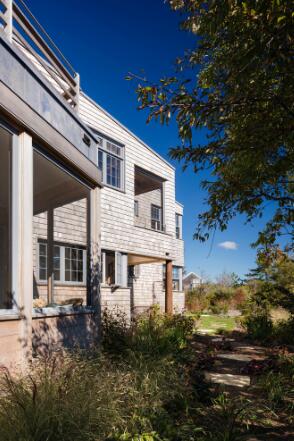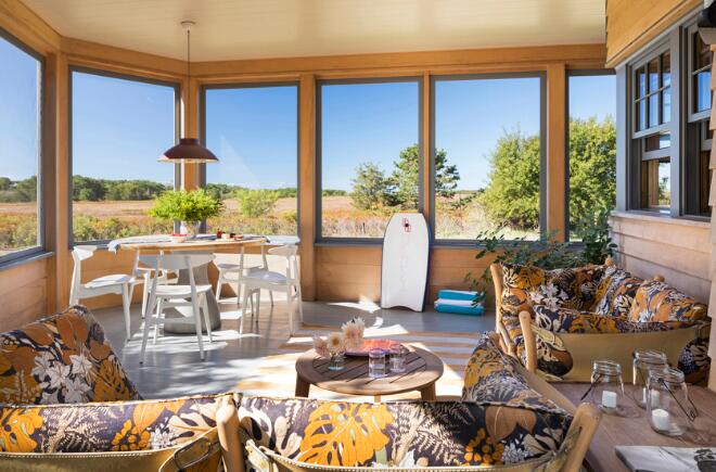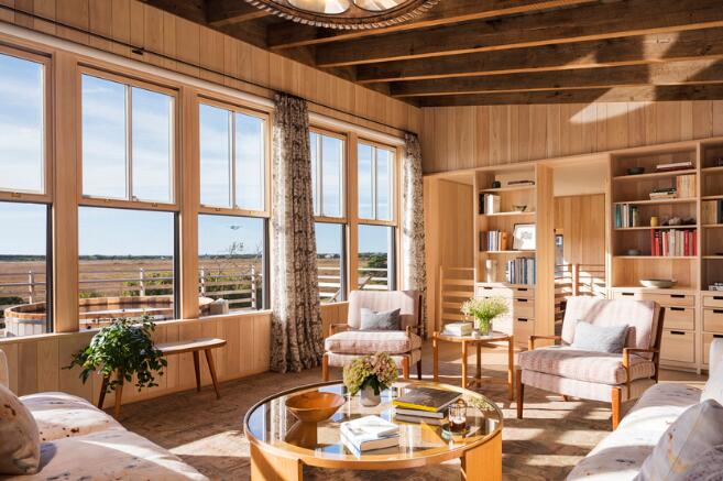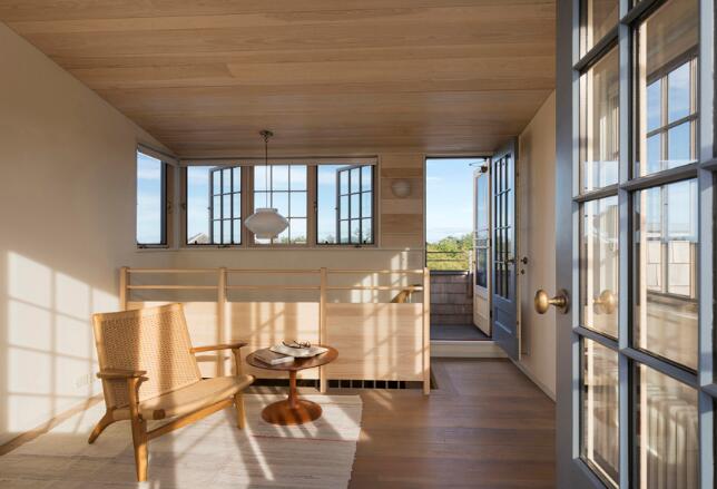 考慮到建筑被海濱草地與放松的海島氛圍所包圍,設(shè)計(jì)者提煉了當(dāng)?shù)卦氐木瑁瑢⑺箍暗募{維亞的感覺與馬薩諸塞州溫亞德的悠閑融為一體,讓這個(gè)靜謐的家以持久的材料和舒適的空間來捕捉不斷變化的風(fēng)景、光線、聲音和微風(fēng)。