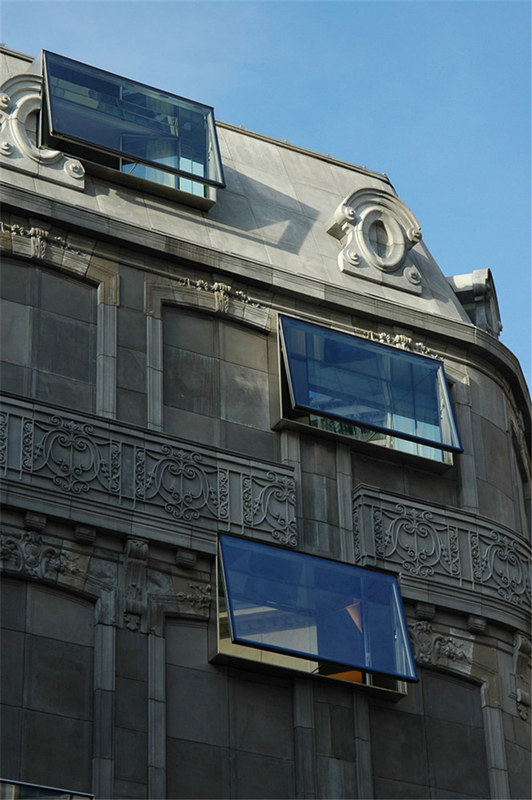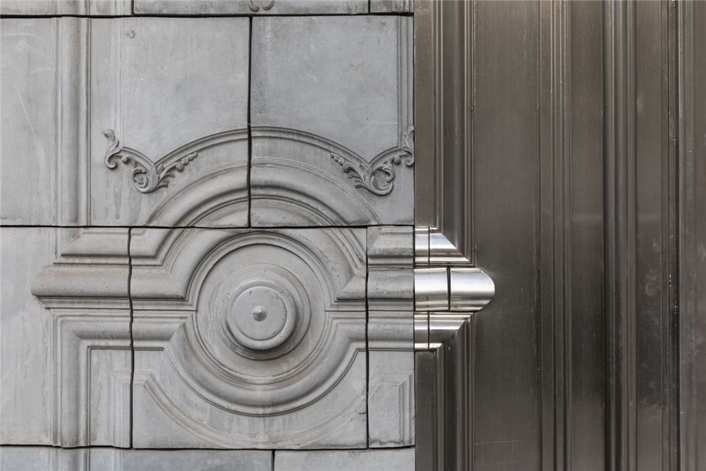 混凝土板再現了建筑的特色窗戶、地下室、屋頂和裝飾。立面實施了新的現代風格的窗戶。 立面上新老開口均采用了簡潔的框架窗,體現了“老+新”的設計理念。