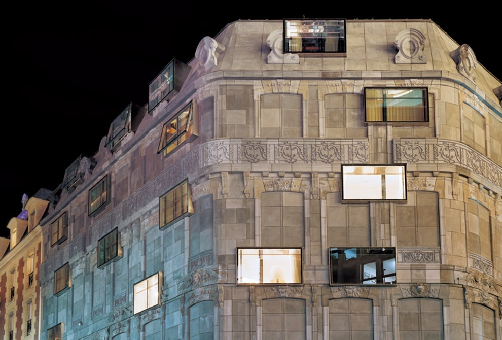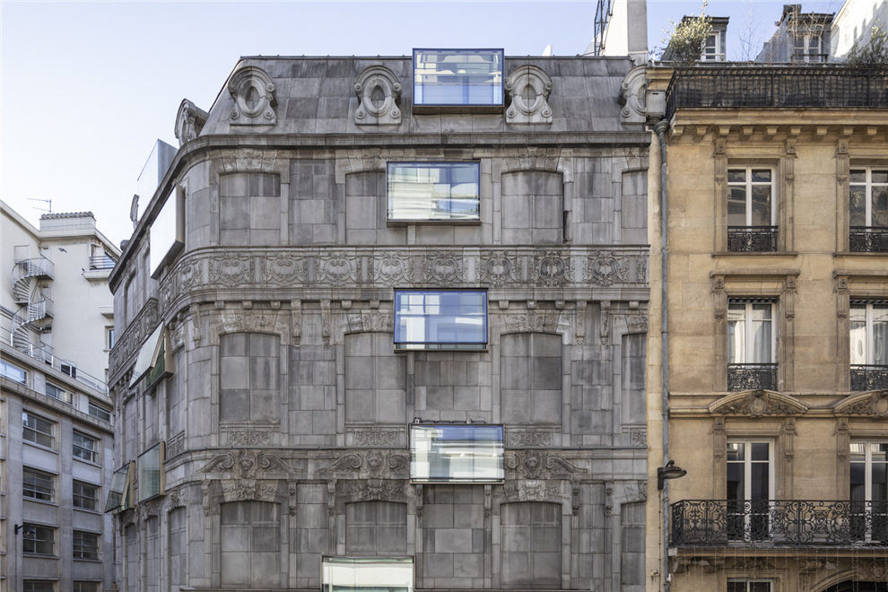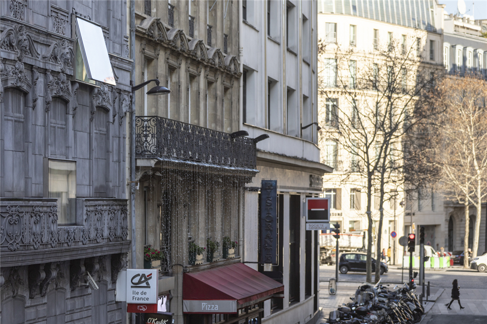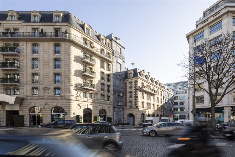 現代材料的多樣化表現形式,使得不同建筑風格的融合越來越強,這棟巴黎“金三角”的酒店便是歷史建筑與現代材料的拼接。七棟大樓組成城市街區的裝飾墻,極具視覺沖擊性。