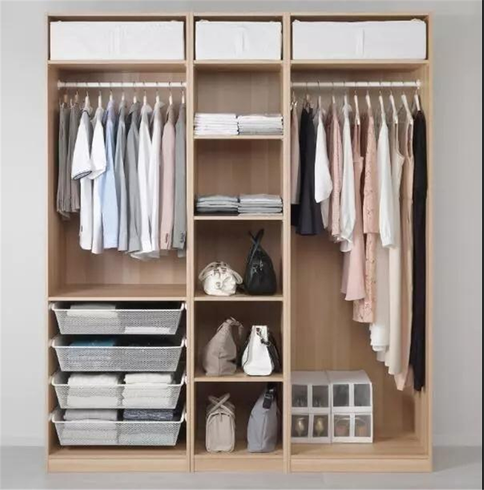 1.?站在衣柜前,平行于腰部以上、頭部以下為常用區域。懶人衣柜的常用區以掛衣為主,因此盡量減少隔板,提供更多掛衣空間讓懸掛衣物處于舒展狀態,方便存取。但較長掛衣桿最好多分幾段,避免承重不足而斷裂。