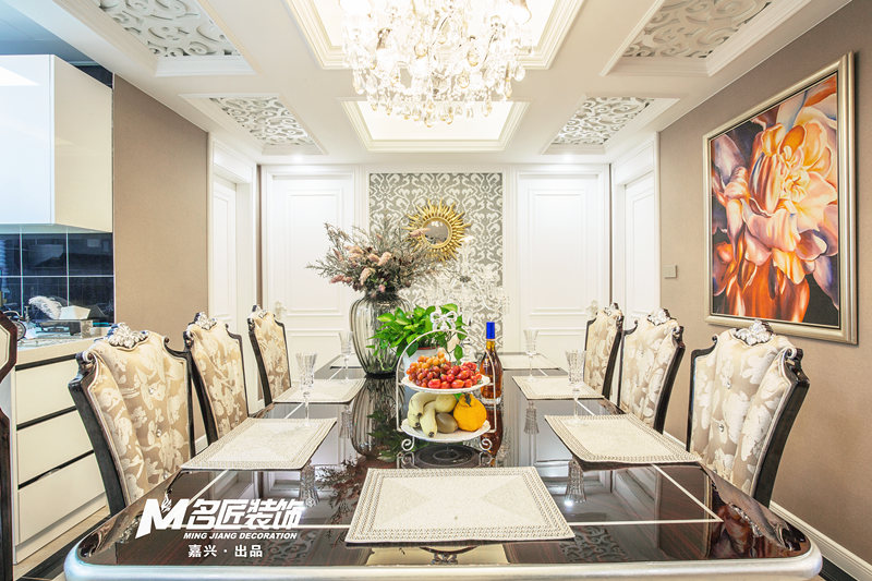 我們的設計師在實用性能之上,用清新典雅的軟裝組合,例如溫暖色調的裝飾畫、古老的金屬掛飾、精致的銀質餐具、晶瑩剔透的高腳杯以及綠意盎然的綠蘿,帶給人美的感受,傳遞生活的美好。