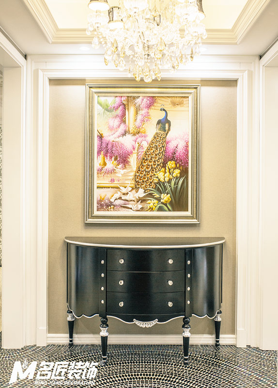 墻上以一幅栩栩如生的孔雀裝飾畫顯露屋主尊貴的身份。