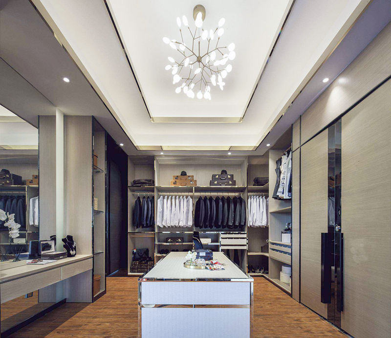 衣帽間要保持足夠的照度,如果照度不夠,會(huì)帶來晦暗的感覺,找衣物就不太方便,不利于換裝。