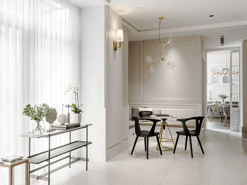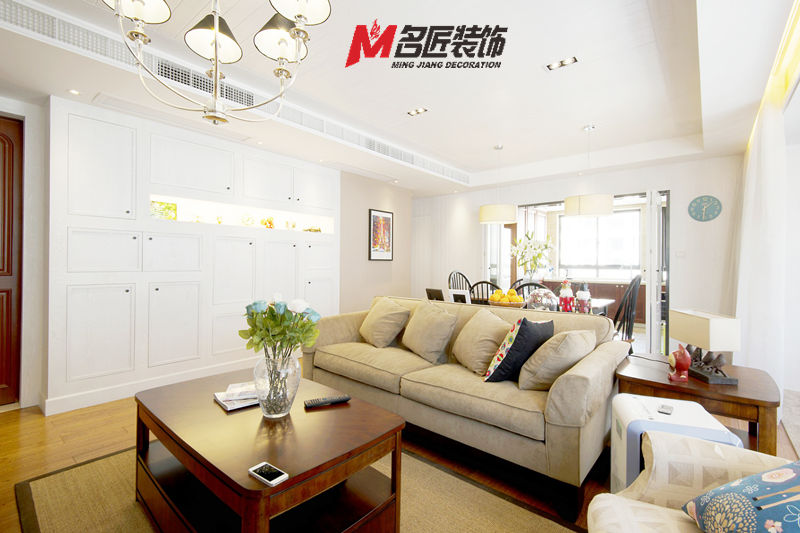 美式現代風裝修的顏色從大地色過渡到了樸素的米色和白色,除了線條感更加明顯外,四方四正也是它的一大特點。