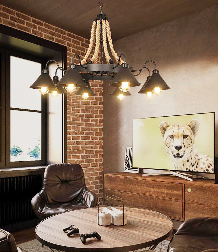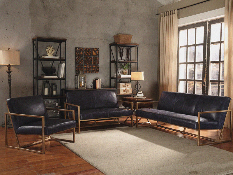 黑色鐵藝(特別是椅子)+廠房燈+皮質沙發+磚墻+黑框玻璃窗