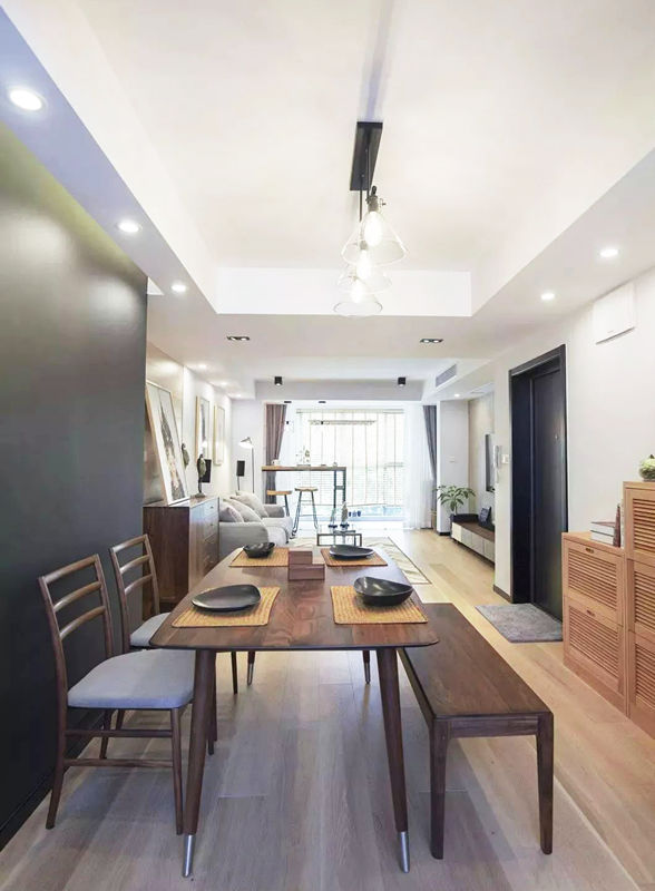 如果餐廳正對入戶門且距離比較長,可以設計一道屏風,避免入戶門直對餐廳,彌補進門即廳的戶型缺陷。屏風前還可以布置一些軟裝,如定制壁畫、微型盆栽等裝飾,非常有氣質。