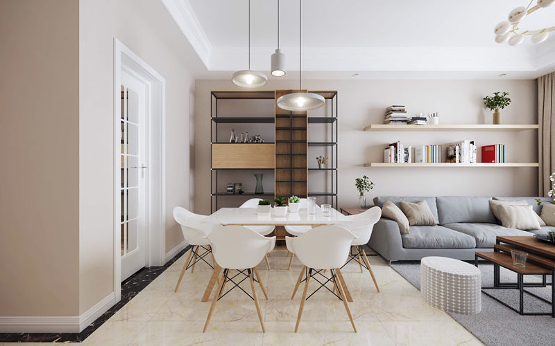這種適合用于面積較大的空間,在客廳與餐廳間或者餐廳與廚房間設計一個推拉門,提升精致度,在客人前來造訪時,將推拉門拉上即可起到隔斷、保護隱私的作用。