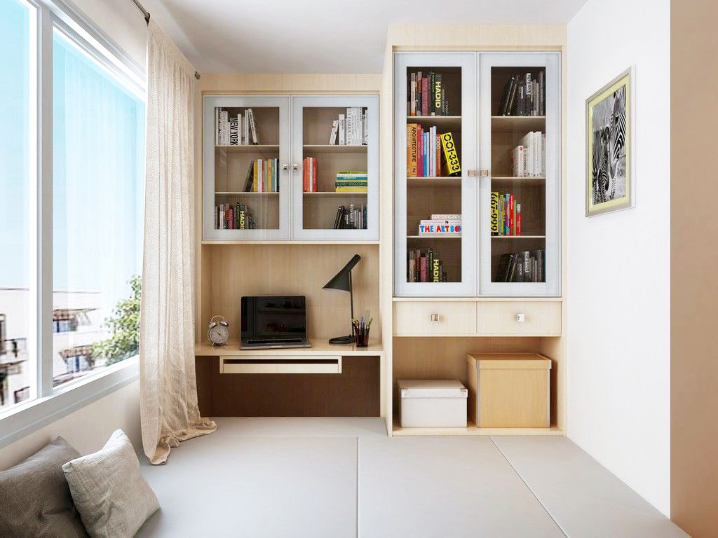 這種組合將書(shū)桌和地臺(tái)結(jié)合,充分利用高空區(qū)域的收納能力,將物品“向上”延伸來(lái)達(dá)到增加儲(chǔ)物空間的作用。然后用開(kāi)放式儲(chǔ)物架結(jié)合封閉式柜門(mén)的設(shè)計(jì),半遮半掩,實(shí)現(xiàn)功能和美觀的統(tǒng)一。