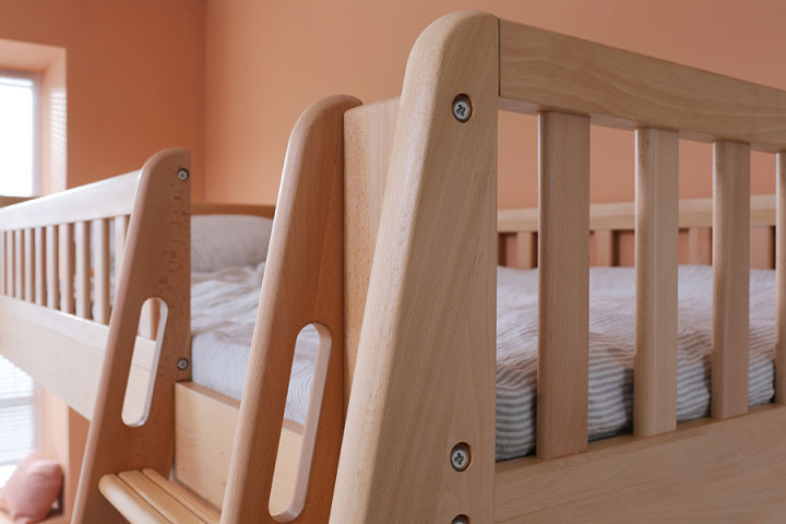 建議選擇使用天然木蠟油涂刷表層的兒童床,天然木蠟油作為純植物提取、可入口的天然木器涂料,不僅環保天然無異味,還能滋潤養護木材,可以放心讓孩子與床親密接觸。
