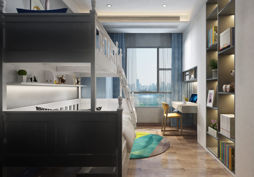 3、兒童房整體布局怎么做?整體布局是指房間內各種家具的設計和擺放。孩童時期愛玩是孩子的天性,在空間條件允許的情況下適當留點娛樂場地也是可取的。例如男孩子的房內可放置室內籃球架,學習過后可以運動一下達到勞逸結合的效果。然后書桌也要綜合考慮孩子每個年齡段的不同需求來設計。床盡量擺放在陽光可以照到的地方,能夠起到自然殺菌的作用。