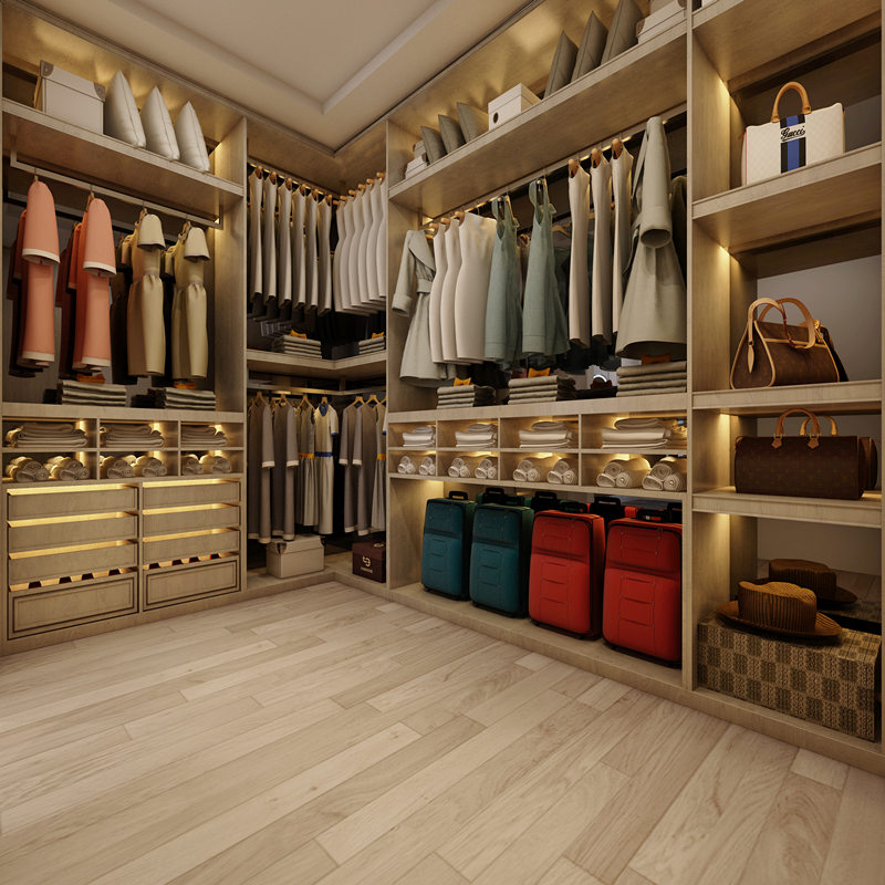 3、我們室內(nèi)裝修設(shè)計(jì)衣帽間就是為了能夠好好的安置自己的衣物,能夠有條理的收納整理自己的衣物,但很多人設(shè)計(jì)了衣帽間,對(duì)于衣物的布置與擺放卻依然很亂,尤其是對(duì)于我們來說衣帽間還是一個(gè)私密的空間,一般不會(huì)有什么人進(jìn)來,因此對(duì)于衣帽間的布置更是臟亂無度,殊不知這是風(fēng)水學(xué)中的一大禁忌,所以對(duì)于衣帽間的布置我們應(yīng)該要整潔,有條理。