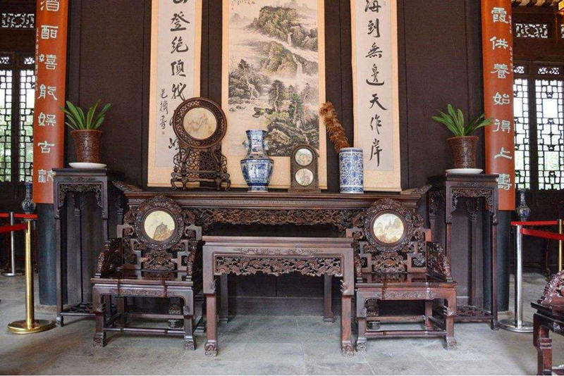 中堂的布置格外講究,它一般處在進入大門后最顯眼的位置,集長條案、四仙桌或八仙桌、太師椅以及花架于一體(也稱“中堂四/六件套”)。