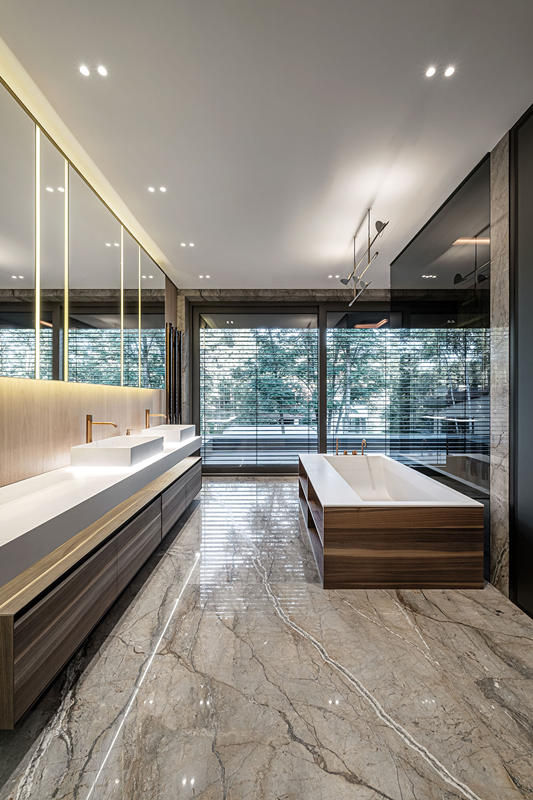 木飾面的沉穩溫暖也讓大理石多了幾分樸素的韻味。