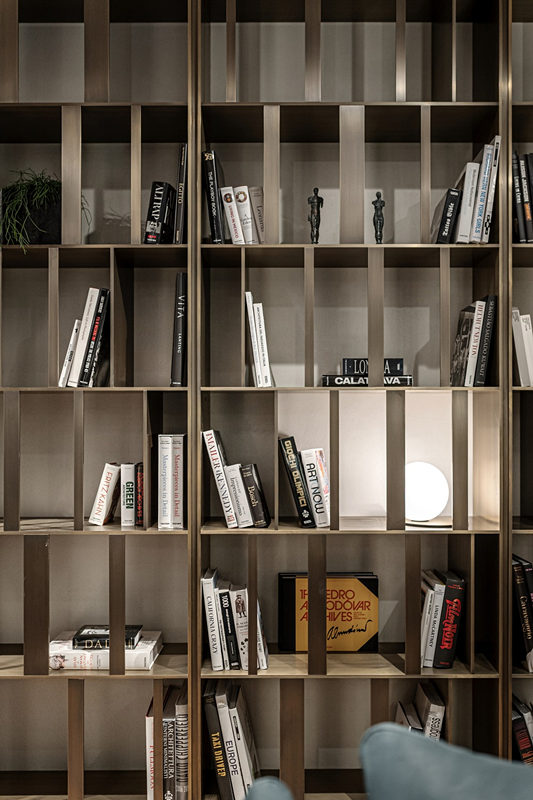 頂天立地的展示型書架不但給家帶來文化氣息,還提供了充足的存書空間。
