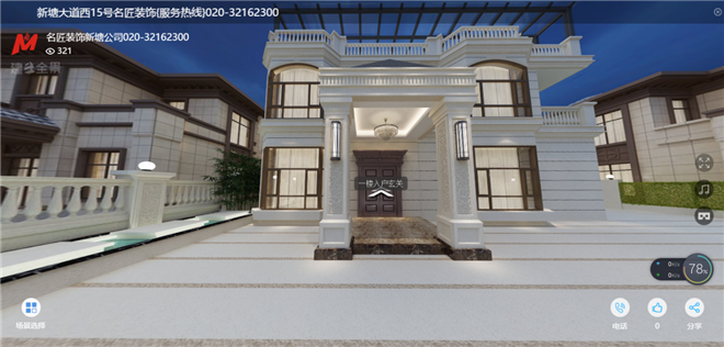 本案室內采用的色調主要以黑、白、灰三色為主,體現現代、時尚的輕奢感;外觀用的黃金麻和真石漆的結合,既可以體現大氣又不失富貴,和周圍的建筑也可以更好的融合